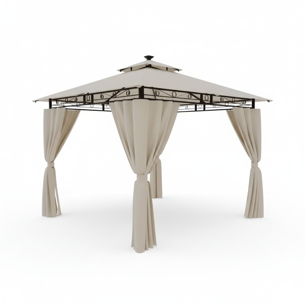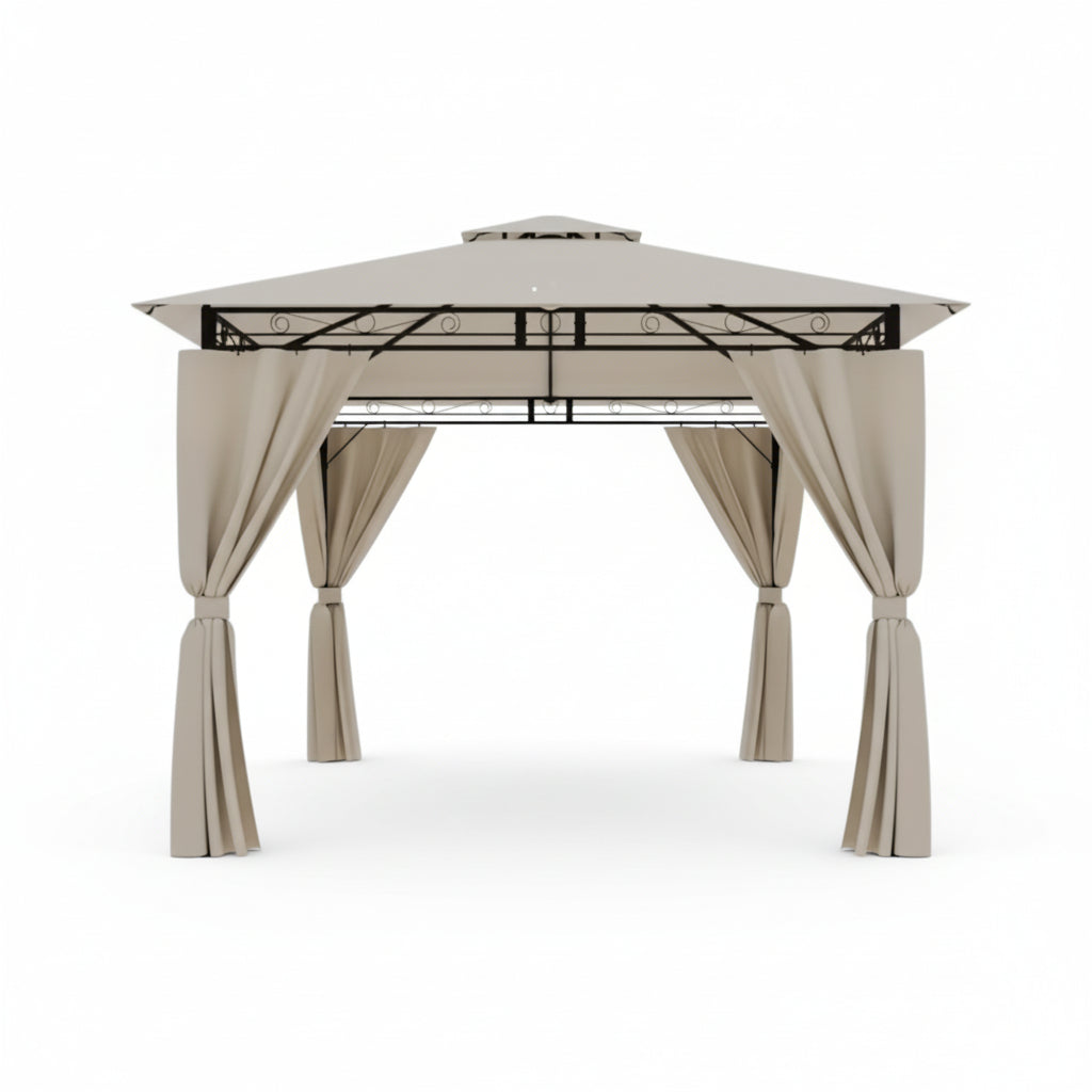 Cette tonnelle dispose de 4 rideaux permettant une meilleure intimité.